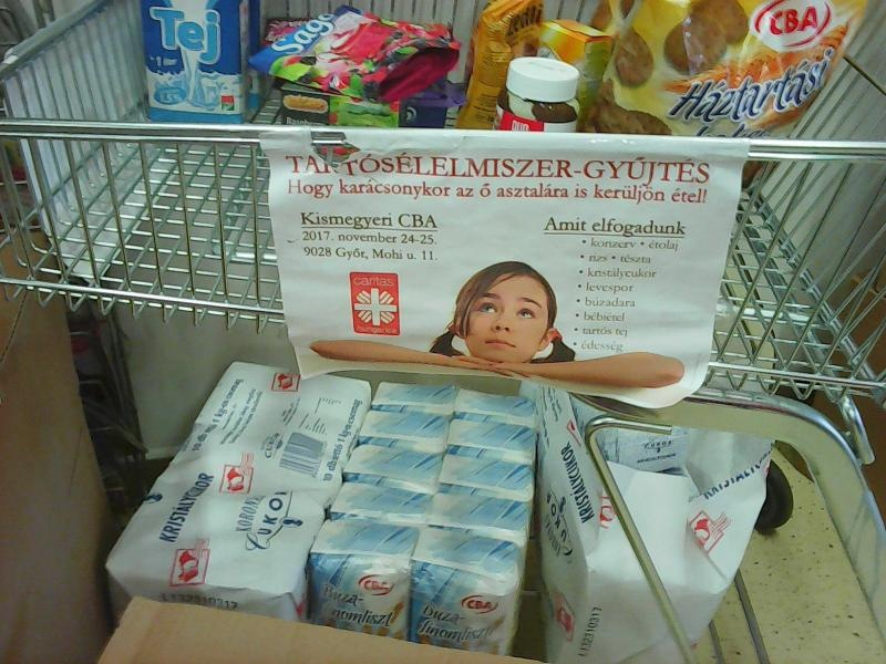 A Szigethy Attila úti TESCO-ban az „Élelmiszerbank”, a kismegyeri CBA-üzletben pedig a „Tárjátok ki szíveteket!” akció keretében gyűjtöttek az egyházmegyei karitász önkéntesei többek között étolajat, száraztésztát, rizst, lisztet, cukrot, konzervet és édességet. A két helyszínen összesen több mint 1400 kilogramm tartósélelmiszert sikerült összegyűjteni.
