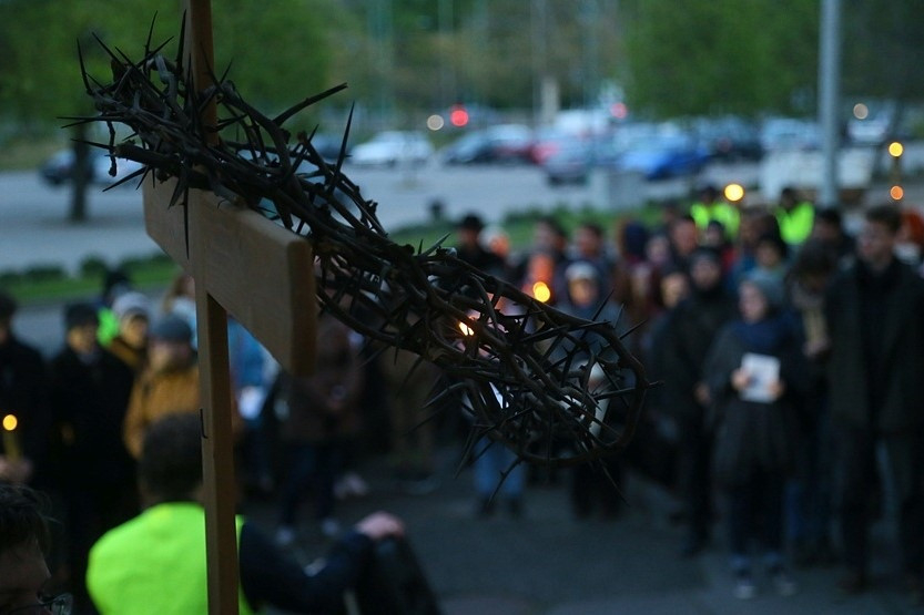 Az idei szegedi városi keresztúton minden állomáson más és más közösség vezette az imádságot: a páli szeretethimnusz mondatainak segítségével elmélkedtek.