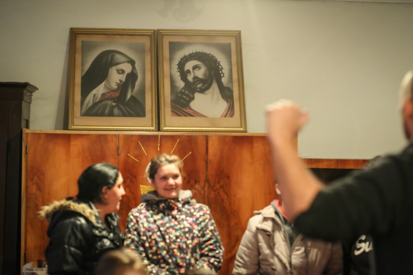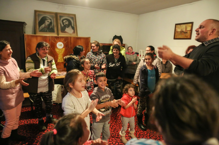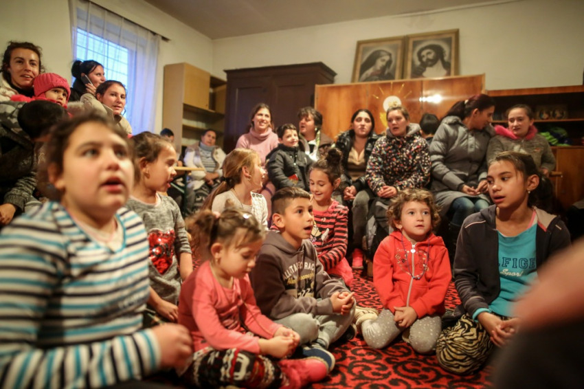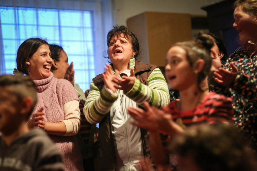 Odabent éppen ének- és táncpróba folyik, de nagyon rendhagyó. Az évszakhoz cseppet sem illően egy afrikai törzs esőhívó táncát gyakorolják, több-kevesebb sikerrel. A végén egy kis tánc összejön ugyan, de afrikai hangulat nem támad. Aztán egy éles váltással karácsonyi énekekbe kezdünk, köztük egy számomra ismeretlenbe: „Betlehem kis falujában karácsonykor, éjféltájban Fiúisten ember lett, mint kisgyermek született.” Ez már mindenkinek tetszik; négy-öt asszony egy padon összekapaszkodva erre-arra hajolgat a ritmusára. A végén a cigány himnuszba is belekezdenek néhányan, de aztán csak néhány sort énekelnek el belőle. A karitász munkatársai naptárt és karkötőt osztanak, aztán Kati néni mond pár szót. „Április óta minden héten itt vagyunk – mondja. – Hogy miért is? Azért, hogy közösségünk legyen, hogy Kállón a roma és a nem roma magyarok befogadják és elfogadják egymást, hogy nagy szeretetben tudjátok nevelni a gyermekeiteket. Arra kérlek benneteket, hogy szeressétek egymást! Jövőre folytatjuk!”