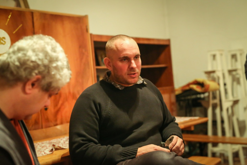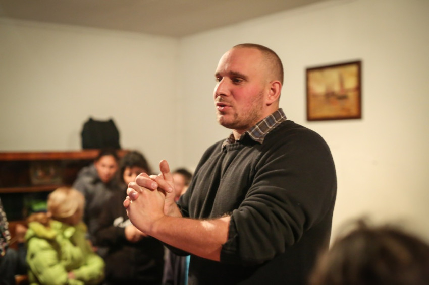 Az asszonyok és a gyerekek távoznak, sietnek haza. Fejér Máté és Imre Sándor, a kézműveskedés és az énekes-táncos együttlét házigazdái Zsámbékról érkeztek. Máté ott lelkipásztori munkatárs, a premontreiekkel dolgozik együtt. Óvodásprogram felelőse, hátrányos helyzetű gyerekekkel foglalkozik. A drótékszerek készítésének különösen nagy sikere volt ma délután, meséli. Olyan anyagokkal akartak dolgozni, amelyeket a résztvevők könnyen be tudnak szerezni. Sándor, aki a szövést tanította, úgy tapasztalta, hogy óriási az igény az efféle mesterségek tanulására. Elsősorban a nők voltak nyitottak, ők adták aztán a bátorítást a gyermekeiknek. Ha az anyuka motivált, az a gyermekére is hatással van. De persze olyan is előfordult ma, hogy egy anyuka a kislánya-kisfia kedvéért kapcsolódott be a kézműveskedésbe.