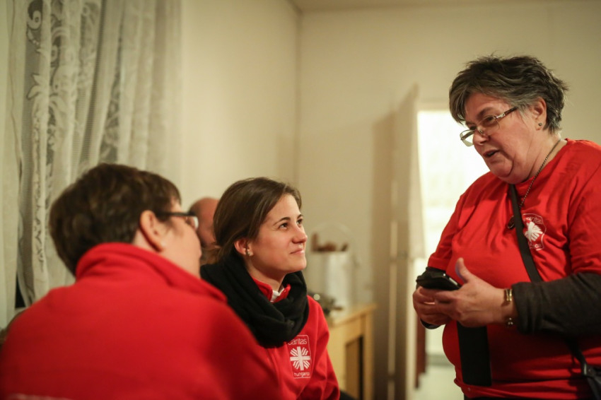 A ház előtt nagy, vidám csoport áll. Már várnak. „Bent majd beszélgetünk!” -- kiált ránk egy asszony. Jó hangulatú programra számítok, ezért szeretnék minél előbb csatlakozni, de Zagyva Richárd, a karitász országos igazgatóhelyettese megállít, hogy képbe hozzon. „Ez itt az Akarom program legutóbbi, fél éves szakaszának lezárása, amelyet Erzsébet-utalványok átadásával kötünk össze. Az elmúlt órákban kézműveskedés: szövés, gyertyaöntés és drótból-gyöngyből való ékszerkészítés volt a program. Az Akarom a családtámogatási modellprogramunk, amellyel háztartásvezetési ismereteket adunk át, a pénz okos beosztása és a tudatos gazdálkodás módszereivel ismertetjük meg a résztvevőket. Minden mást kérdezz nyugodtan Mezei Katitól, mert Kállón ő a program lelke.”