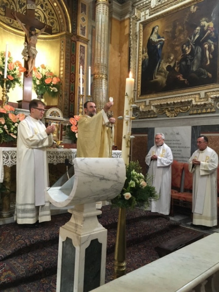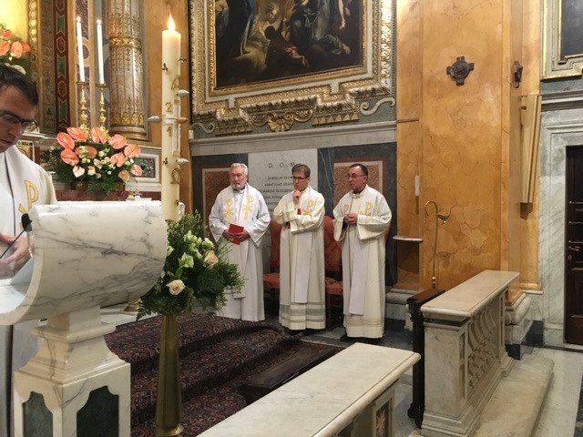 A szentmise főcelebránsa és szónoka az intézetet felügyelő Vigilancia Bizottság tagja, Kovács Gergely pápai káplán, a Kultúra Pápai Tanácsának irodavezetője volt, aki homíliájában a napi evangéliumi szakaszra (Jn 16,16–20) utalva arról beszélt, hogy az ajándékba kapott „kis időt” jól használjuk fel. Erre nagy lehetőséget ad egy-egy Rómában eltöltött akadémiai év. A tanév végi hálaadás kapcsán elhangzott: minden elvégzett munkát, Istennek tett szolgálatot csak az tud igazán értékelni, aki szívével-lelkével benne van. Jelen volt még Szentmártoni Mihály jezsuita szerzetes, a Vigilancia Bizottság elnöke, a Pápai Gergely Egyetem professzora és Melo Lajos domonkos szerzetes, a bizottság tagja, a Santa Maria Maggiore-bazilika magyar gyóntatója, valamint a Pápai Magyar Intézetben dolgozó munkatársak.