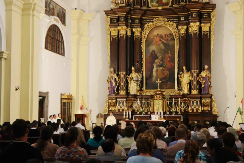 A főünnepre rendelt evangélium felszólításából kiindulva – „Jöjjetek hozzám mindnyájan, akik fáradtak vagytok, és terhek alatt görnyedtek, én felüdítlek titeket!” – arra figyelmeztetett Palánki Ferenc megyéspüspök, hogy az üdülés nem jelentheti a búcsút mondást az imának, szentmisének. Mindig Jézushoz kell mennünk – hangsúlyozta a szónok.