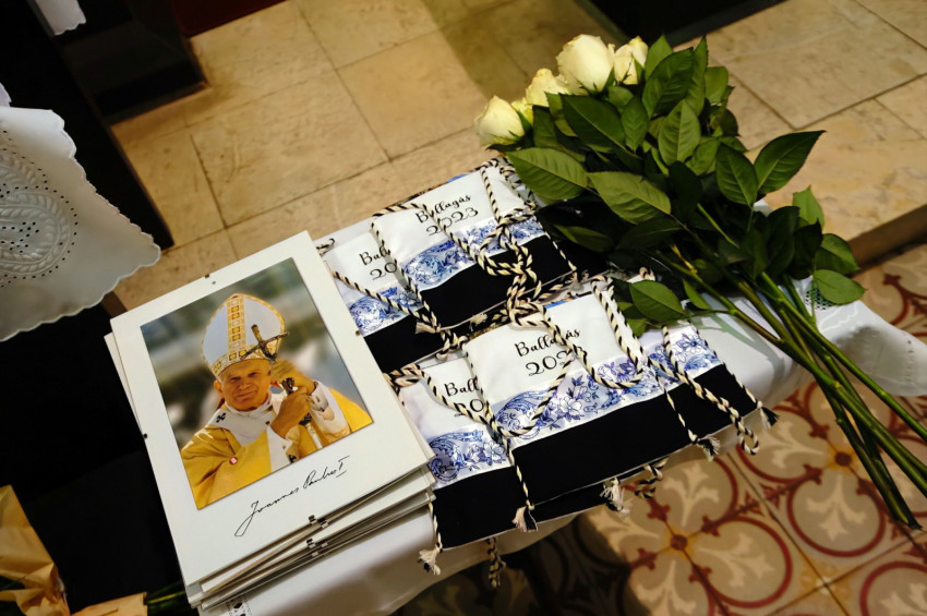 A ballagótarisznyákat Köbli Tamás, a szakkollégium spirituálisa áldotta meg. A ballagók lakótársai pedig személyes hangvételű búcsúleveleiket olvasták fel.