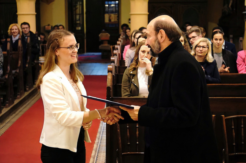 Nagy Zsolt, a II. János Pál Szakkollégiumért Alapítvány kuratóriumi elnöke átadta a szakkollégium kiválósági ösztöndíjait. Kiemelte: az alapítvány a szakkollégisták körében hirdetett ösztöndíjpályázatban a kiválóságot helyezi követendő példának a szakkollégisták elé.