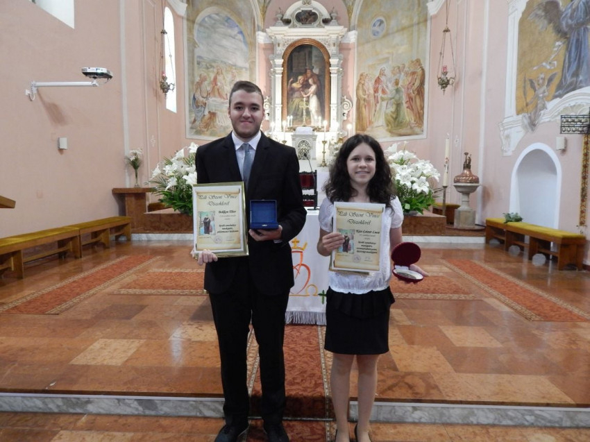 Páli Szent Vince-díjat kaptak az alábbi tanulók: Kiss-Leizer Luca nyolcadikos tanuló (kisdíj) és Bokkon Tibor tizenkettedikes tanuló (nagydíj).
