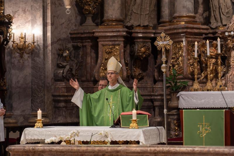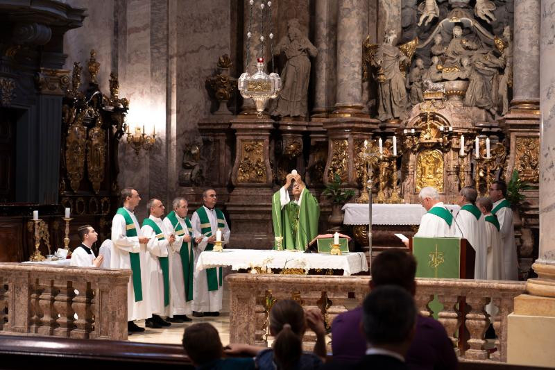 Martos Levente Balázs esztergom-budapesti segédpüspök a tanévzáró szentmise elején köszöntötte az egyetem vezetőit, oktatóit, munkatársait és hallgatóit.