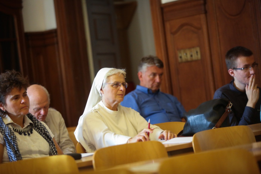 Gloviczki Zoltán, a PPKE BTK docense az iskolai keretek közt megvalósítható szociális érzékenységre nevelés alapproblémájáról beszélt. Akár a tanár, akár a diák, akár a tananyag felől közelítve a kérdést rossz úton járunk, ha valóban szeretnénk a diákokban előmozdítani a szociálisan érzékeny gondolkodást – mondta az előadó. Külső szempontra van szükségünk, a teremtett világra – hangsúlyozta Gloviczki Zoltán –, pontosabban és konkrétabban „a koldus arcával” való találkozásra. Hozzátette: meg kell mutatnunk – akár éppen a kötelező közösségi szolgálat keretében – a szegénységet, a sérültséget, a betegséget, az elesett embert. S a tapasztalatból kiindulva felhívhatjuk a diákok figyelmét a felelősségre. Ezáltal a tanulónak megváltozhat a környezetéhez való általános viszonya is, hiszen minden emberben ott van a sérültség, valamilyen szinten a szegénység, az elesettség, a hiány. Kulcsfontosságú, hogy a család és a társadalom között közvetítő szerepet betöltő iskola szeretet- és emberközpontú legyen. Szemléltetésképpen az értelmi sérültekkel közösségben élő Jean Vanier mélyen emberi világát idézte fel az egyetemi tanár.