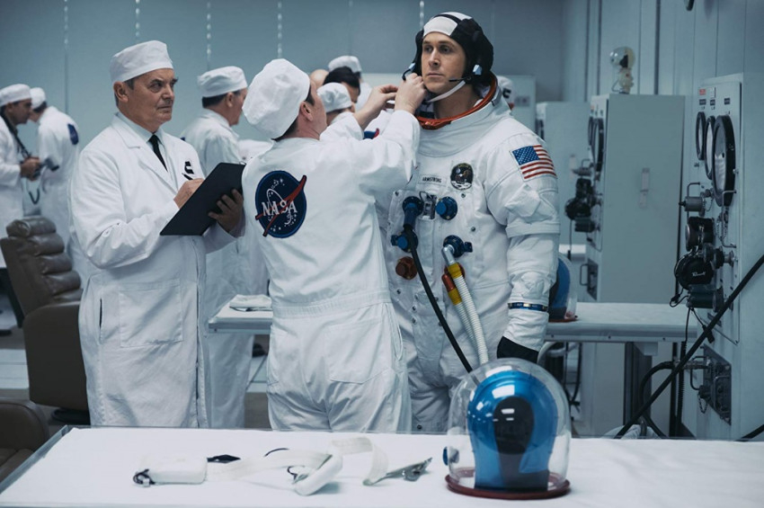 Ahogyan rögtön a film elején, úgy a legrázósabb helyzetekben később is sokszor jelenik meg a vásznon Armstrong szubjektív nézőpontja, melynek következtében a néző számára is testközelbe kerülnek az események. A legfeszültebb jelenetekben nem a hagyományos kalandfilmes logikával vág a rendező, a szubjektív beállításokat is hosszabban kitartja. Ennek is köszönhető, hogy a tesztrepülések, a gyakorlatok és maga az Apollo-11 küldetés izgalmas jelenetei is leválnak a letisztult játékfilmes képi világról, és az olykor esetlen kézi kamerás, dokumentarista ábrázolás visszafogottsága teremti meg a drámai hatást. Az események hátterében folyamatosan jelen van a család szempontja, miközben sikeres vagy éppen csak szerencsés kimenetelű gyakorlatok és kísérletek zajlanak, és a szerencsétlenül járt bajtársakról érkező halálhírek is erősítik a kételyt: vajon meddig érdemes vállalni a kockázatot, ki lesz a következő? Armstrong és felesége, Janet (Claire Foy) jelenetei is hitelesek a megtartott feszültségnek, az életszagú dialógusoknak, az érzékeny képeknek és a kiváló alakításoknak köszönhetően.