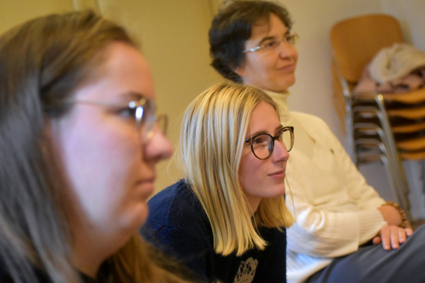 Nagy érdeklődéssel fogadták a hallgatók a közös ebéd után megrendezett kerekasztal-beszélgetést, melynek keretében Fehérváry Jákó OSB és a főiskola néhány oktatója, Jackánics Fülöp OFM, Somogyiné Petik Krisztina, Szatmári Györgyi, valamint Tóth Beáta elmondta, hogy ők milyen indíttatásból jelentkeztek évekkel ezelőtt az ösztöndíjprogramra, milyen nehézségeket kellett leküzdeniük, és mivel gazdagodtak az idegen ország egyetemén. Valamennyi résztvevő arról számolt be, hogy rendkívül erős késztetést éreztek arra, hogy elmélyítsék tudásukat. Vonzották őket a szakma más országokban elérhető, széles körű lehetőségei, a tudományterületekhez kapcsolódó hatalmas mennyiségű forrásanyag, a könyvtárak, a professzorok által átadott ismeretanyag és a gyakorlati ismeretszerzés lehetősége.