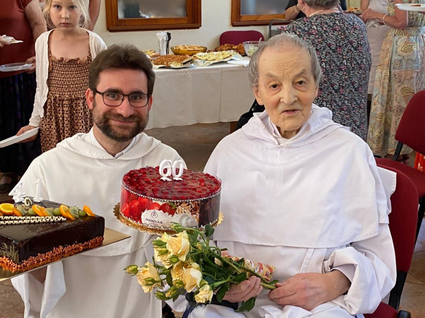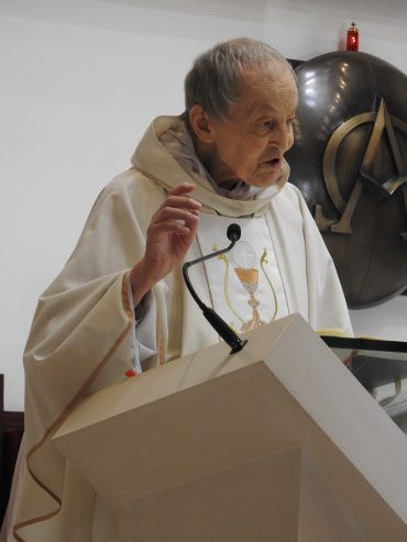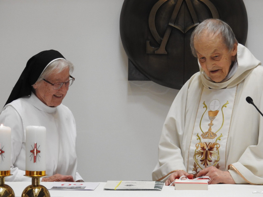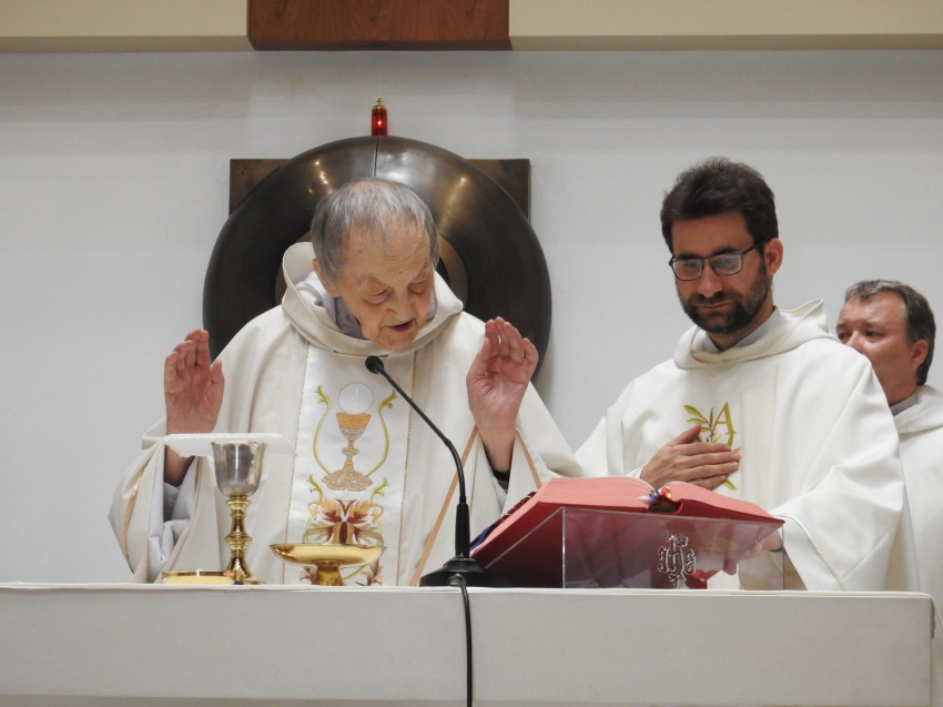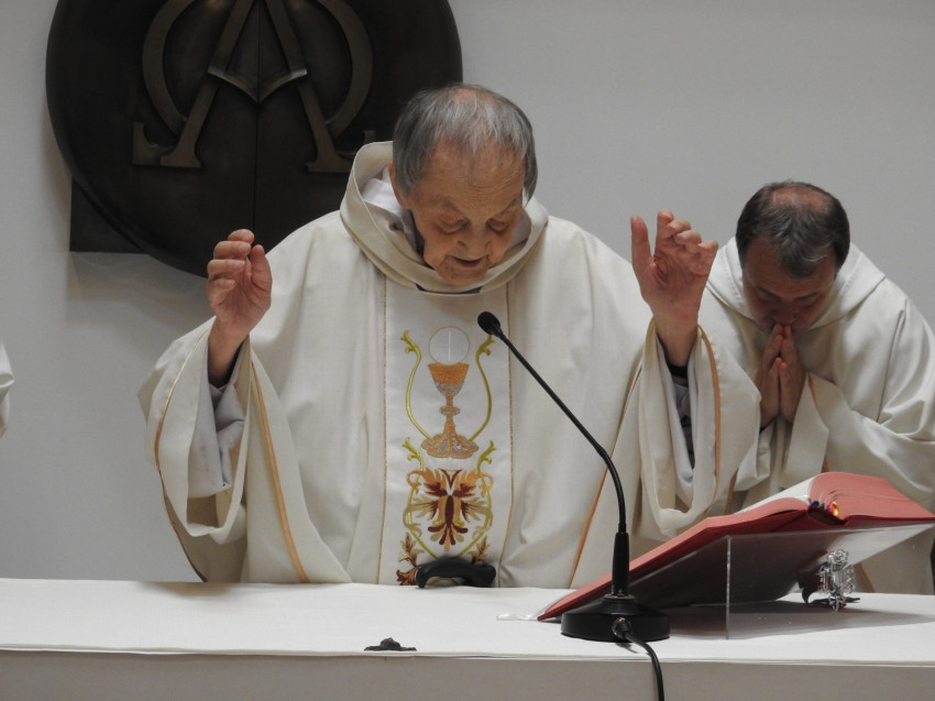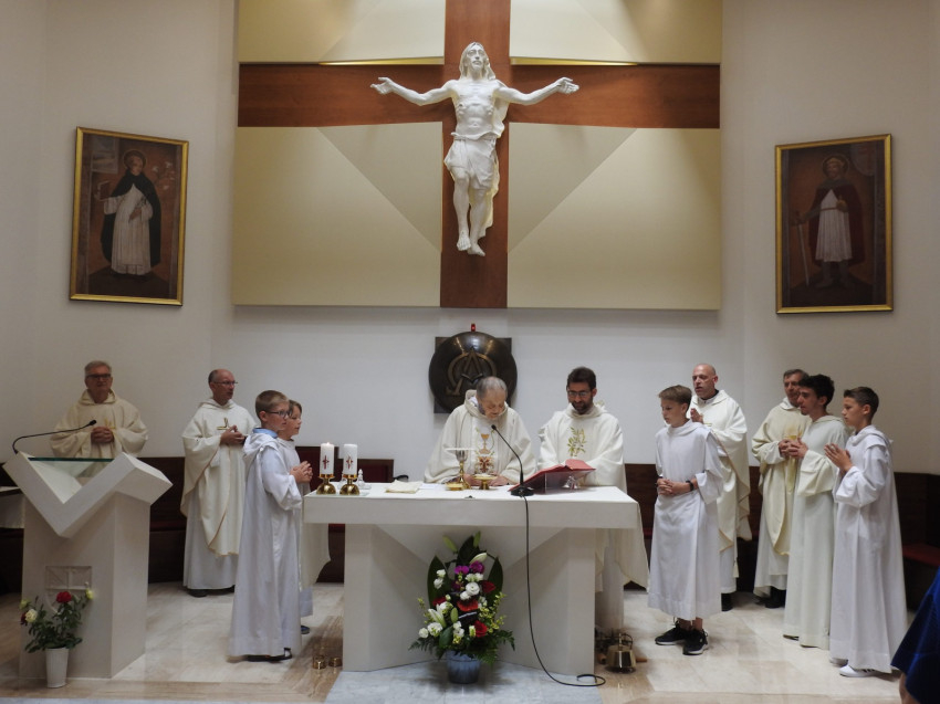 A szentmise homíliáját maga az ünnepelt mondta, aki felidézte, hogy hatvan éve – domonkos szokás szerint – a „Confitemini Domino quoniam bonus” szavakkal kezdte első szentmiséjét. Ezt a latin kifejezést szokták mondani a szentgyónás, feloldozás után is. „Adjatok hálát az Úrnak, mert jóságos hozzánk” – a magyar megfelelő jó fordítás, de a kifejezés még többféle értelmezést tesz lehetővé. Benne van az, hogy adjunk hálát Istennek, mondjunk köszönetet, valljuk meg, dicsőítsük Őt. A válasz erre a segédkezők részéről: „Confiteor Deo omnipotenti.” („Megvallom a mindenható Isten előtt.”) Igen, Istent megvallani akarjuk, mindenképpen dicsőíteni, hálát adni neki. Miért? „Quoniam bonus”, mert Ő jó. Isten maga a jóság, tökéletes, igaz, szépség, szentség, minden, ami jó, az megvan Őbenne, mert Ő jó önmagától fogva mindörökre. Minket, embereket nyilván az érdekel elsősorban, hogy Ő hozzánk is jó. Miben nyilvánul meg ez? „Quoniam in saeculum misericordia eius.” Mert irgalma örökké megmarad. Megbocsát nekünk gyarlóságaink ellenére is. Minden ajándékkal, kegyelemmel elhalmoz bennünket.
