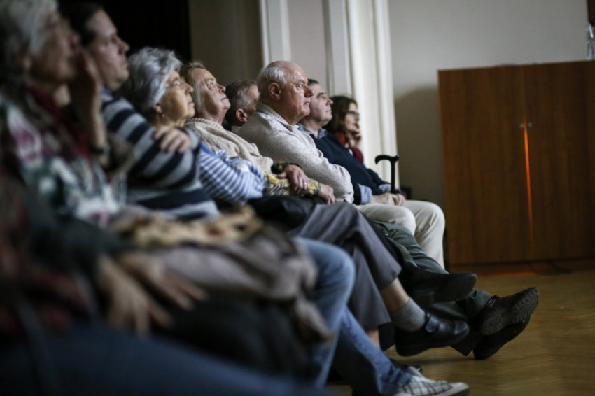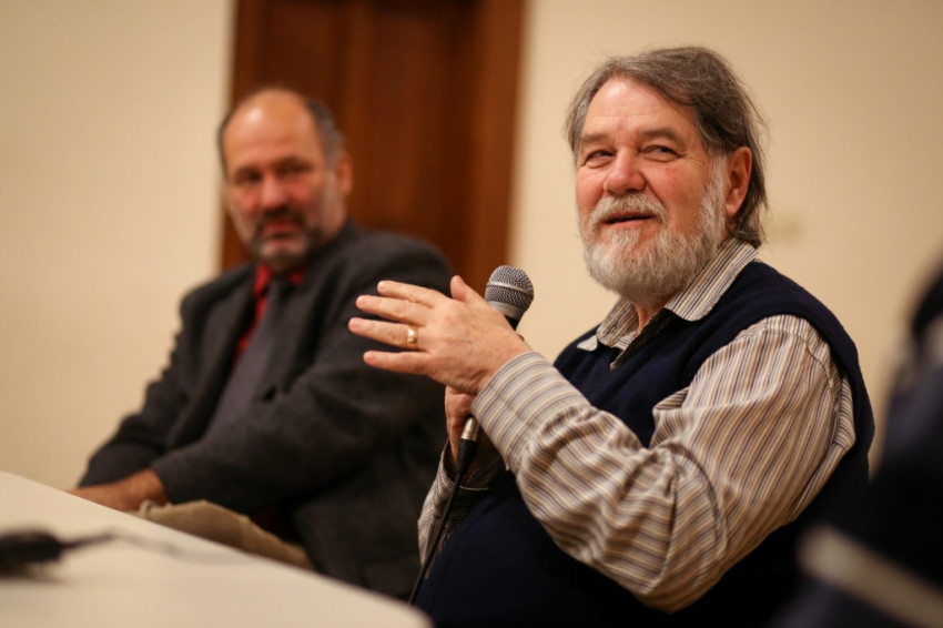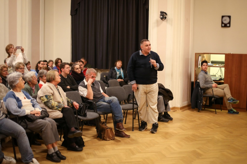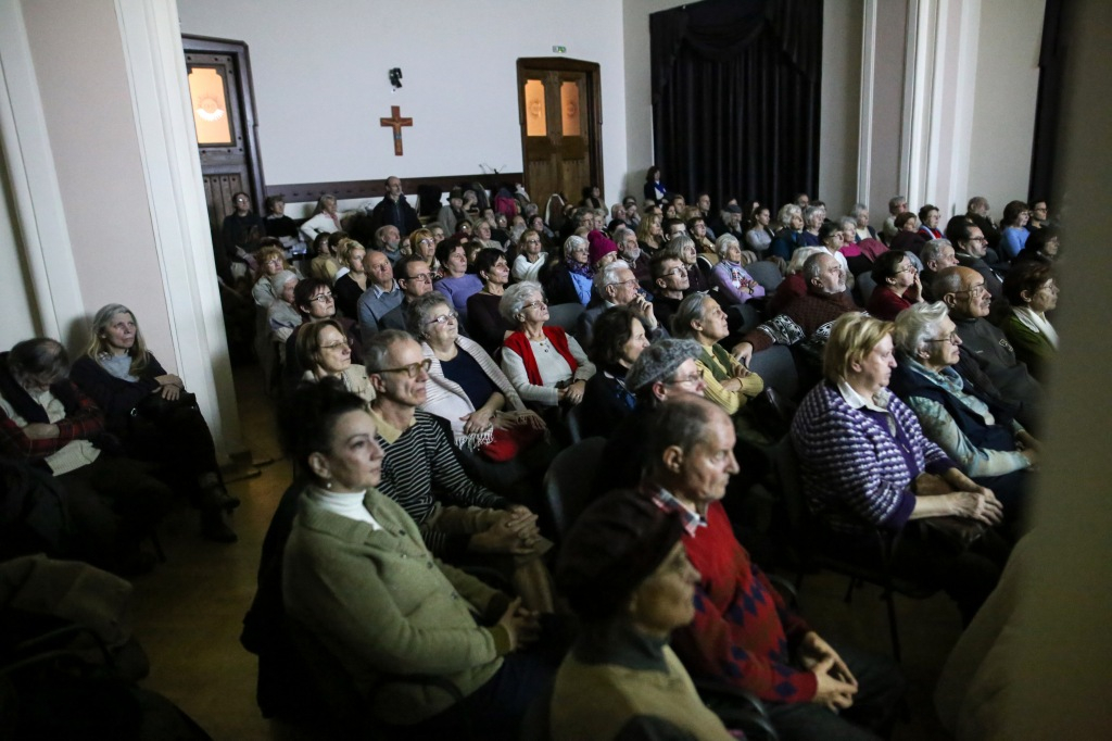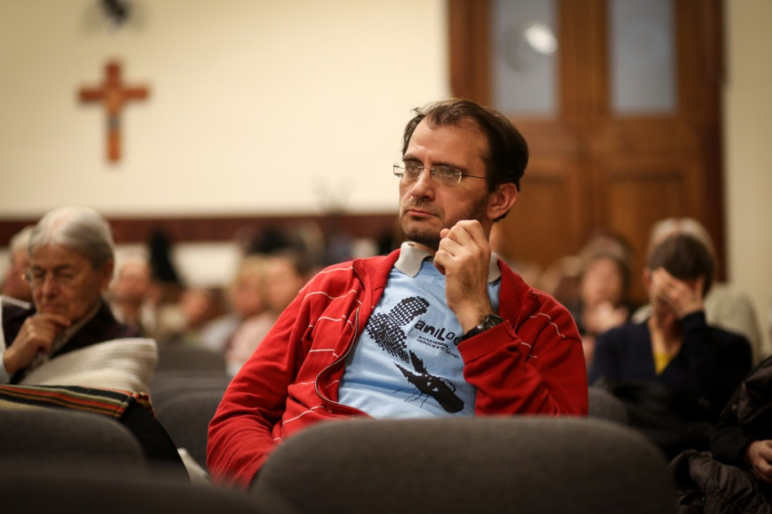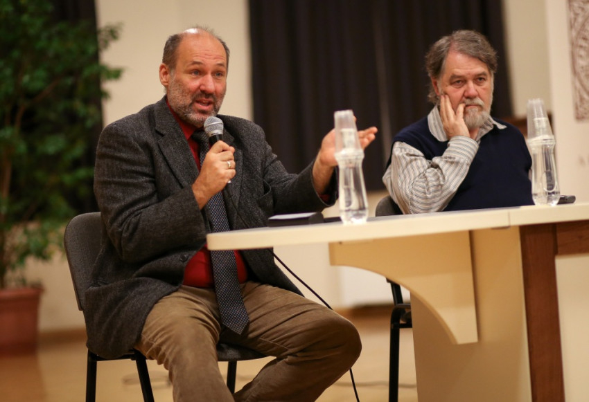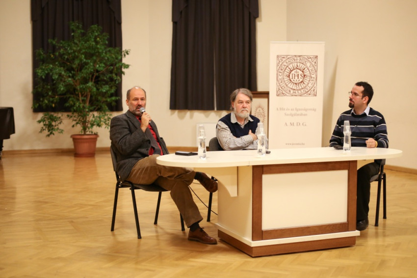 A vetítést követően Lázár Kovács Ákossal, a PPKE docensével és Baán István görögkatolikus pappal Gőbel Ágoston, a Magyar Katolikus Rádió munkatársa beszélgetett. A riporter kérdésére, vajon tekinthető-e Anatolij atya a szent őrült megtestesítőjének, hiszen hatalmas a hite, Baán István kifejtette: a szent őrült nem egyenlő a bolond fogalmával, hanem a Szent Pál-i mondás – teljesen Krisztusé vagyok, ő él bennem – szellemében értendő. Anatolij atyára is ez jellemző. Lázár Kovács Ákos megemlítette az Emberek és istenek című filmet, amely a múlt század kilencvenes éveiben játszódik egy kis algériai faluban. Az évek óta ott missziót szolgáló nyolc ciszterci szerzetest meggyilkolják az iszlám milicisták. Érdekes összehasonlítani a nyugati és a keleti szerzeteséletet és gondolkodásmódot. Az Emberek és istenek szerzetesei visszafogottabbak, csendesebbek. A sziget Anatolij atyája viszont napjában többször is szembenéz a bűneivel, ostorozza magát azok miatt, egy életen keresztül.