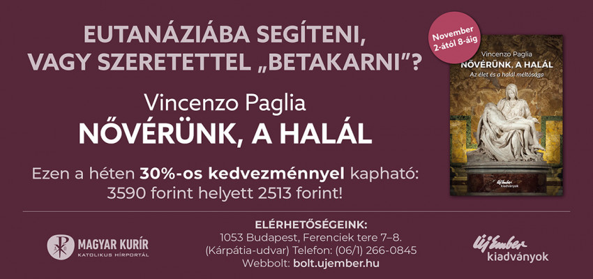 Vincenzo Paglia Nővérünk, a halál című kötete megvásárolható az Új Ember könyvesboltban (Budapest, V. kerület, Ferenciek tere 7–8. Nyitvatartás: hétfő, kedd, csütörtök, péntek: 9–17 óráig; szerdán 10–18 óráig) vagy megrendelhető az Új Ember online könyváruházban.
