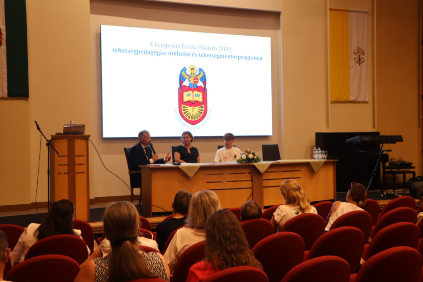 Ezt követően a rektor bemutatta a Veszprémi Érseki Főiskola (VÉF) Tehetséggondozó Központjának Tehetségpedagógiai Műhelyét és tehetségmentor-programját, valamint pódiumbeszélgetésre is sor került, ahol a programban részt vevő fiatalok bemutathatták eddigi tapasztalataikat.