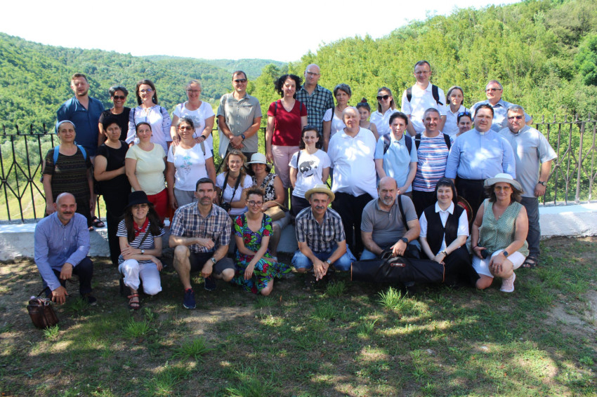 A továbbképzés keddi napja a zarándoklat és a kirándulás jegyében telt. Az autóbusznyi résztvevő előbb a bánsági németek és más kisebbségek kedvelt zarándokhelyére, Máriacsiklovára indult Johann Dirschl és Szilvágyi Zsolt vikáriusok, valamint Kocsik Zoltán vezetésével. Az autóbuszos utazás következő állomása a csehek által lakott Dunaszentilona volt. Itt Hojda Ionuc helyi és újmoldovai plébános néhány, népviseletbe öltözött hívővel fogadta a tanárokat. Kis templomukban a falu tanítónője mutatta be a település, a plébánia múltját és jelenét, majd a helyiek cseh egyházi énekekkel kedveskedtek a hozzájuk érkezőknek. A találkozás meghatóan szép momentuma volt a Miatyánk cseh és magyar nyelven való elimádkozása.