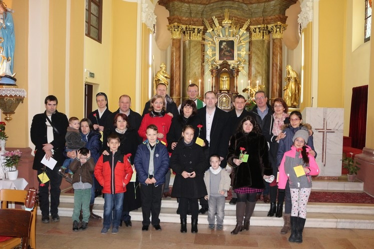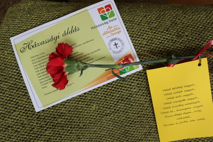 A szentmise végén a jelen levő közel ötven család áldásban részesült. Mindegyikük egy-egy szál virágot, oklevelet és idézetet vihetett haza otthonába a házasság hete alkalmából.
