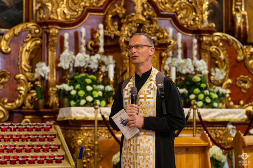 A 16 kilométeres kört mintegy hatvanan kezdték meg Mosolygó Péter kegyhelyigazgató áldásával a kegytemplomból indulva, ahol Szabó Tamás, a Nyíregyházi Egyházmegye pasztorális helynöke köszöntötte az egybegyűlteket.