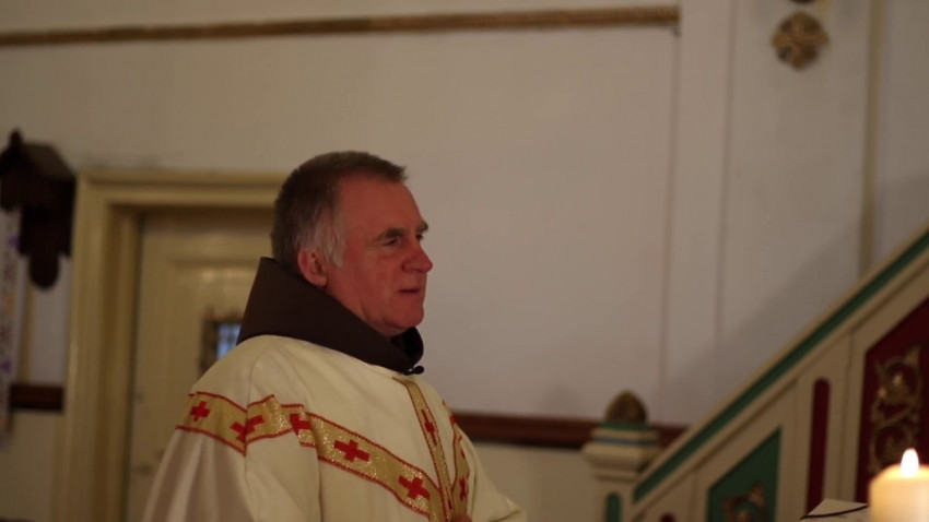 Böjte Csaba ezúttal a szászvárosi templomból, plébániai állomáshelyéről üdvözölte a Keresztény Tanösvény zarándokait.