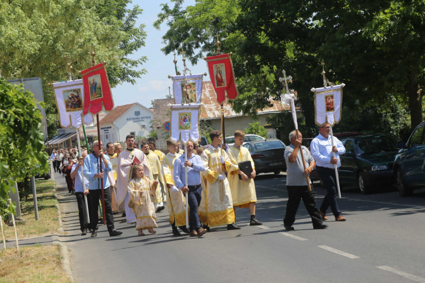 Harang és énekszó kíséretében járták végig a szentelési helyszíneket. Az ünnepi alkalmon egy fiatal énekesek alkotta meglepetéskórus működött közre szolgálatával.