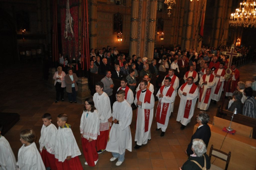 Az ünnepi szentmisét megelőzően Franziskus Heereman neuburgi bencés apát nyitotta meg az Adalbert von Neipperg apát életútját bemutató kiállítást. Szavait magyarul Gyuris László székesegyházi plébános, szerb nyelven segédlelkésze, Draghia Novita tolmácsolta.