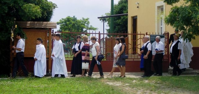 A helyi hagyományoknak megfelelően a július 3-i búcsúi szentmise most is azzal kezdődött, hogy a ministránsok és az egyháztanácstagok a plébánossal együtt indultak a plébániáról körmenetben a templomba, ahol a szép számú hívő várta őket.
