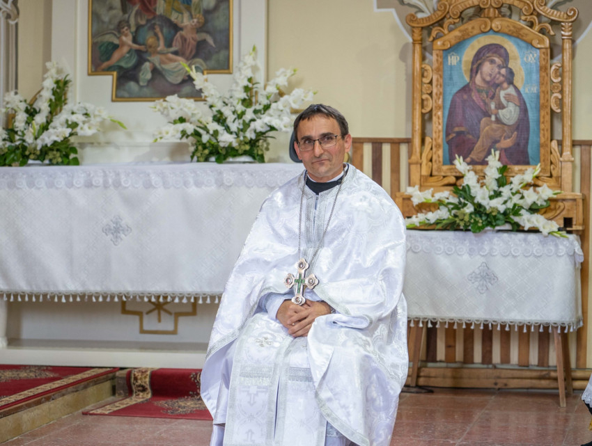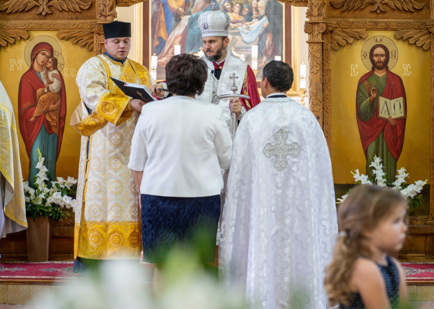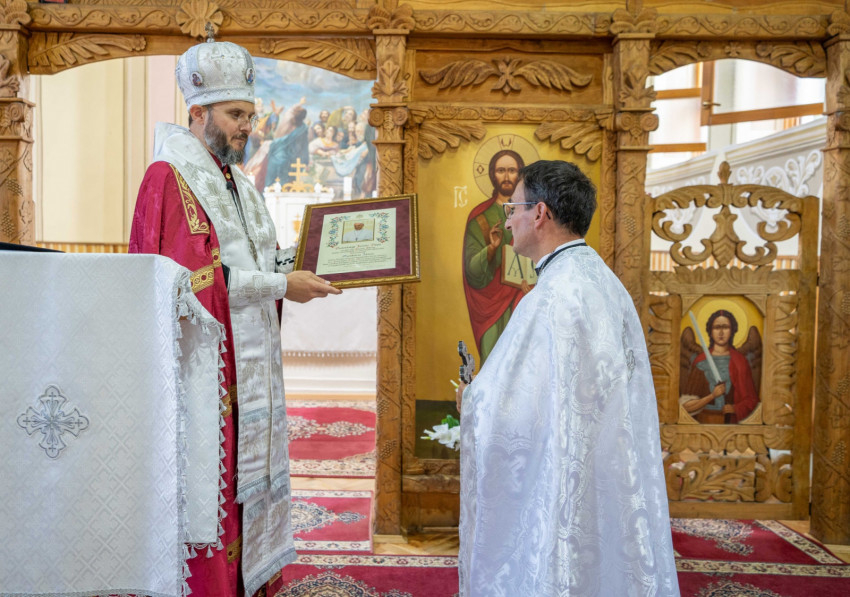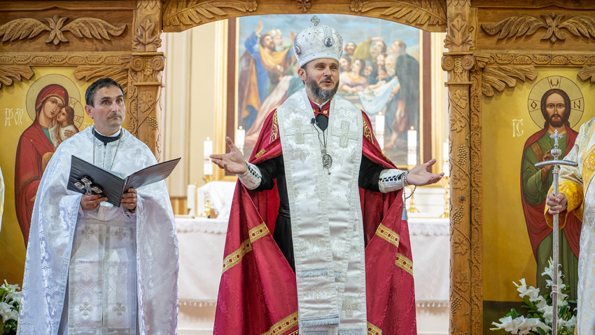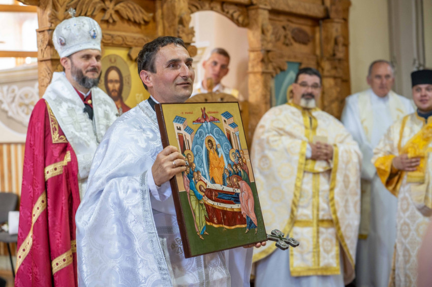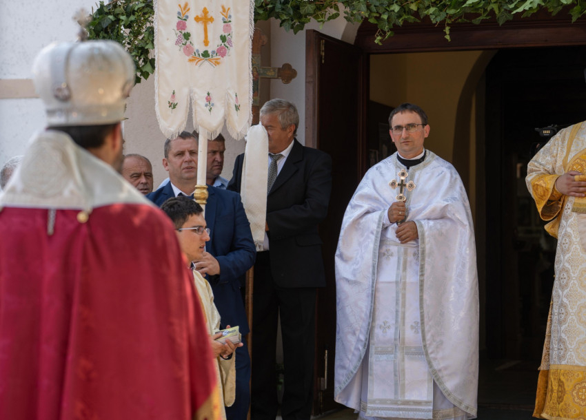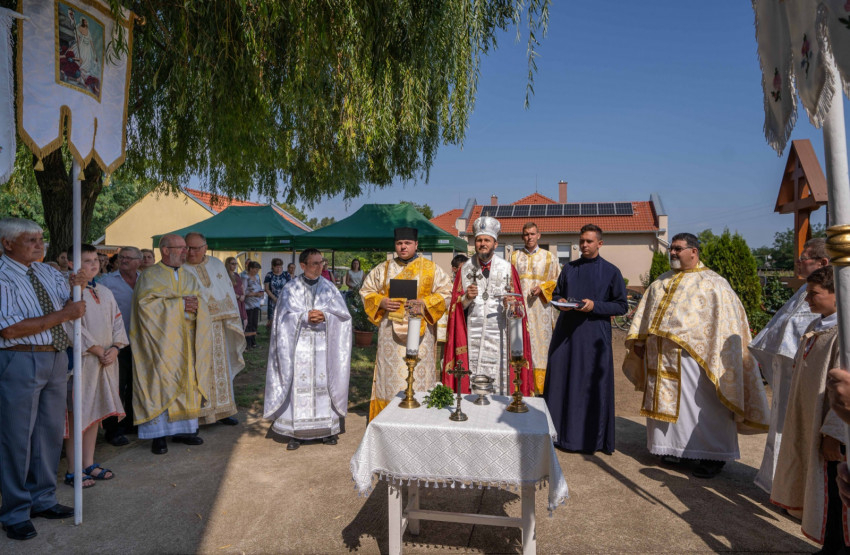 Az idei ünnepen e megújult épületeket áldotta meg Szocska Ábel püspök – a templomot a liturgia előtt, a parókiát a szertartás után hintette meg szenteltvízzel.
