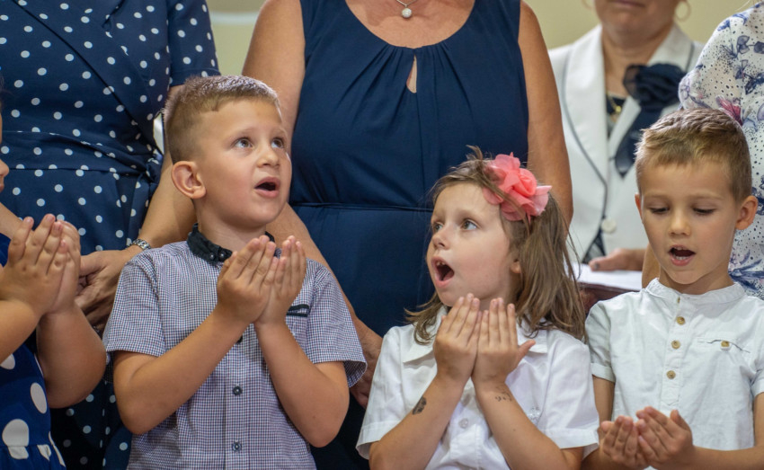 A parókust sokan köszöntötték, köztük a helyi óvoda gyermekei, a polgármester és az egyházközség képviselőtestülete.