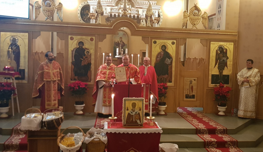 A templomi szertartásokon az ugyancsak vendégként jelen lévő ifj. Gorcsa György máriapócsi főkántor vezette az éneket. A Szent Liturgia végén közösen mondták el a hívek a Szent Miklós-kilenced imáját, a helyi parókus pedig megáldotta a nőszövetség által készített hagyományos Szent Miklós-kenyereket, majd himnuszok, miroválás és ereklyecsókolás következett.