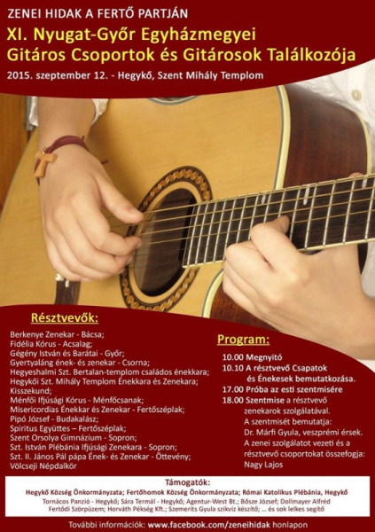Immár tizenegy éves hagyományra tekint vissza a Győri Egyházmegye nyugati részének gitáros egyházi kórusait és zenekarait egybefogó összejövetel, amelyre ezúttal minden eddiginél nagyobb számú résztvevőt várnak. A tízéves jubileum tavalyi megünneplése – melyre a szervező egyesület szülőfalujában, Fertőszéplakon került sor – úgy tűnik, mély nyomot hagyott minden résztvevőben. A szabadtéri fesztivál, a színpadi külsőségek, a magas látogatottság és a Cserháti Ferenc püspök által celebrált zárószentmise azóta már szép emlék, a rendezvény méretei azonban – örömteli módon – nem zsugorodtak: tizenöt együttes jelezte részvételi szándékát.