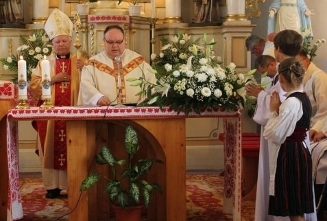 A szentmise keretében Tamás József segédpüspök áldotta meg a felújított istenházát, majd az ünnep szónokaként szólt a hívekhez. Prédikációjában a hármas ünnep fontosságát, jelentőségét fejtette ki. Rámutatott, a templom szent hely, itt találkozhat a hívő ember Istennel. A papi jubileumokról, a búcsúünnepekről szólva az Istentől kapott kegyelmekre, az ezekért kinyilvánítandó hála szükségességére mutatott rá a szónok.