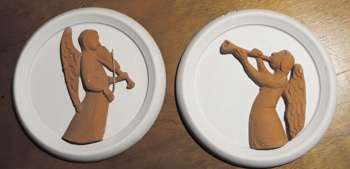 A Baksa Kerámiaműhely karácsonyi anyagából végül feltétlenül külön említést kívánnak azok a fali tálak, amelyeken nem a művésznő mókás angyalkái láthatók, hanem Fra Angelico komoly muzsikáló angyalainak agyagba álmodott, kezükben hangszert tartó testvérei, akik láttán magunk is énekelni kezdünk. Hálával tartozunk most minden, Baksa Gyöngyihez hasonlóan ünnepre hangolt alkotónak, akik jóvoltából kevésbé érzékeljük bezártságunkat, és további művészeti ágak felé fordulva karácsonyba tudjuk öltöztetni a szívünket!