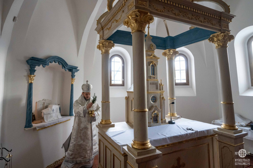 A templomban másfél év óta először végzett Szent Liturgián a prédikációt Szocska Ábel püspök mondta, aki a templom megújulását a hit folyamatos megújításával állította párhuzamba. „Nem elég megépíteni, fenn kell tartani, időről időre meg kell újítani, foglalkozni kell vele” – mondta a főpásztor.