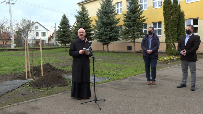 Papler Pál János plébános, az iskola lelkipásztora úgy fogalmazott, a fa ültetése azt jelenti, hogy a jövőbe tekintünk, hosszú távra, s ez az Istenbe vetett hit jelképe is egyben. Kiemelte, azért választották a kocsányos tölgyet, mert őshonos fajta.