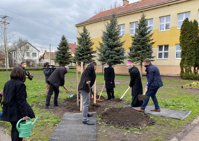 A szertartás végén a főpásztor, a füzesabonyi iskola igazgatója, az iskolalelkész, a város polgármestere és alpolgármestere, valamint Németh Zoltán teremtésvédelmi referens együtt ültették el a facsemetét a Széchenyi István Katolikus Iskola udvarán.