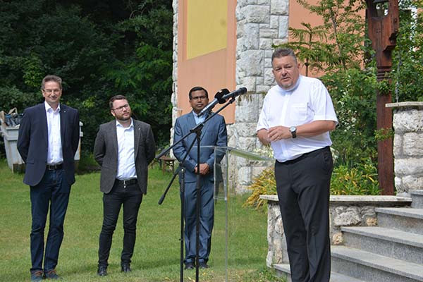 Miután Gadácsi Péter, a Gerecse Natúrpark Látogatóközpont vezetője üdvözölte a jelenlevőket, átadta a szót Schanda Tamás államtitkárnak, aki megjegyezte, hogy Péliföldszentkereszten mindig épül valami, hiszen alig fél éve adták át a Gerecse Natúrpark Látogatóközpontot, és az újabb környezettudatos beruházás is azt tükrözi, hogy meg kell óvnunk a teremtett világot. Emlékeztetett, hogy II. János Pál és Ferenc pápa többször is irányt mutatott a híveknek ebben a kérdéskörben is, de szükség van a hétköznapi, gyakorlati tettekre is ahhoz, hogy ezt az emberek a lehető legjobban megértsék és elfogadják. „Bátran mondhatjuk, hogy a szaléziak ebben példát mutatnak” – mondta Schanda Tamás.