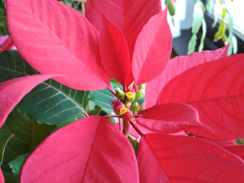 De mi készteti erre a különös átváltozásra a leveleket? A mikulásvirág szirom nélküli, külön porzós és termős virágai aprók, jelentéktelenek, és furcsa, kissé torz virágzatba rendeződnek, amit a botanikusok külön névvel illetnek, ez a cyathium. A virágos növények története körülbelül százötvenmillió éves, rengeteg csodálatos forma, különleges megoldás született meg ennyi idő alatt, de az nagyon különös, hogyha a fejlődés során a szirmok, a színes virágtakaró levelek egyszer már elcsökevényesedtek, a történet már visszafordíthatatlan. Amikor újra szükség lenne rájuk, a növény inkább a lomblevelek szintjére lép vissza, azokból formál csalogató, színes „szirmokat”.