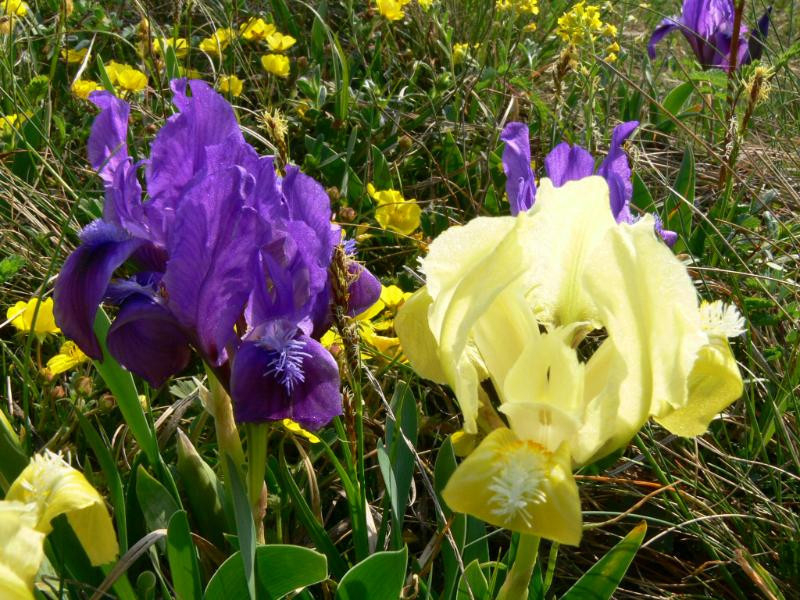 De mitől függ valójában, hogy melyik virágnak lesz a legtöbb utódja? Mivel végső soron a megporzó rovarok színlátása, „ízlése” dönti el, hogy milyen fajok népesítsék be a sziklagyepeket, és az ilyenkor legszorgalmasabban gyűjtögető dongók leginkább a lilát, a sötétkéket és a sárgát kedvelik, így az íriszek is egyfajta szelekciós nyomás alatt állnak. Ezért illeszkednek a többi sziklalakó közé többségükben ilyen harmonikusan. (Hogy az ember miért találja szintén ezeket a színeket így együtt ilyen szépnek, az még titokzatosabb. Mindenesetre Szinyei Merse Pál is sárga virágokkal teli mezőre ültette a Lilaruhás nőt, és még a kalapján is sárga a szalag…)