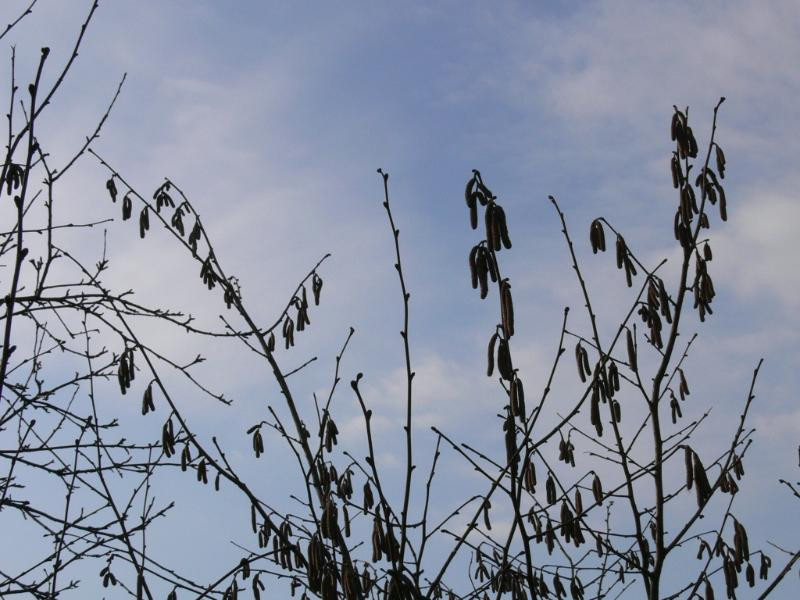 A gallyak kérgének színe, mintázata, a rügyek formája, zártsága, molyhos takarója vagy fényes, kemény pikkelyei mind segítettek a fajok felismerésében, és közben – talán először életünkben – rácsodálkoztunk erre a csodálatos ötletgazdagságra, sokféleségre, a téli fagyvédelem célszerűségére, ahogy a különböző tájakról ideszármazott fajok meséltek őshazájuk éghajlatáról a rügyek titokzatos formanyelvén… Mennyire más a magas hegységekben honos büszke fák rügyeinek szigorú zártsága, mint a kelekótya bodzabokroké! A rügypikkelyek ugyan megvannak itt is, de nem takarják szorosan a levélkezdeményeket. Olyanok, akár a sietős ember, van ugyan rajta kabát, de nincs rendesen begombolva, így jellemezte őket a gyakorlatvezető. Az orgona kövér virágrügyeiben pedig már most benne van a virágzat miniatűr zöld kezdeménye. Kétfelé állnak a hajtás végén, párosával, villásan, és ez az elágazási minta az egész bokor ágrendszerén ritmikusan ismétlődik. A nyírfa, a mogyoró barkái is készen várakoznak, tökéletesen megformálva, de még tömören, a lehető legkisebbre összehúzódva. A meleg tavaszi szél fogja csak megnyúlásra bírni őket, aztán majd a március kibontja a portokokat, és megindul a pollenfelhő a szél hátán, felkeresni a még lombtalan, jól átjárható erdőkben a távoli fajtársakat.