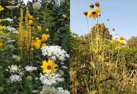 De milyen szerencse, hogy ilyenkor nyílnak az érdeslevelű, évelő, aranysárga dísznapraforgók is! Egymás közelébe érdemes őket ültetni, hogy jól érvényesüljenek magas száron bókoló, kecses virágaik a kék-lila virágtengerben. A maghozásig ugyan nem jutnak el, de a földfelszín alatt sűrű hálózatot alkotnak a gyökérsarjak, és a csicsóka formájú gumókban komoly tápanyagraktárakat rendeznek be, így hatalmas telepeket alkotnak a kertben – de különös módon a legszebbek mindig a szélsők, az éppen terjeszkedők, amelyek friss földben fúrják magukat előre. Igazi hódítók, szemmel kell tartani őket, hogy meg ne fojtsák a kevésbé harcias szomszédokat.