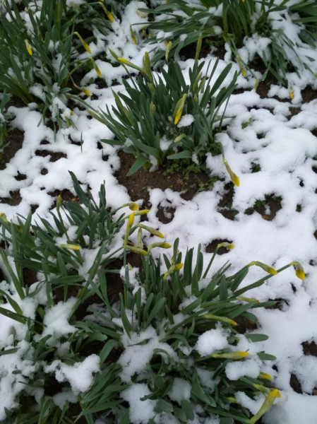 kevesebb szerves anyag képződött, a talajt se tudták leárnyékolni, és persze a kevés zöld lombfelület párával se gazdagította a levegőt. A nárciszok, a császárkoronák is jóval alacsonyabbra nőttek, mint tavaly, a hirtelen leszakadó hóban, a fagyban eldőltek, de a virágzáson egyikük se takarékoskodott.