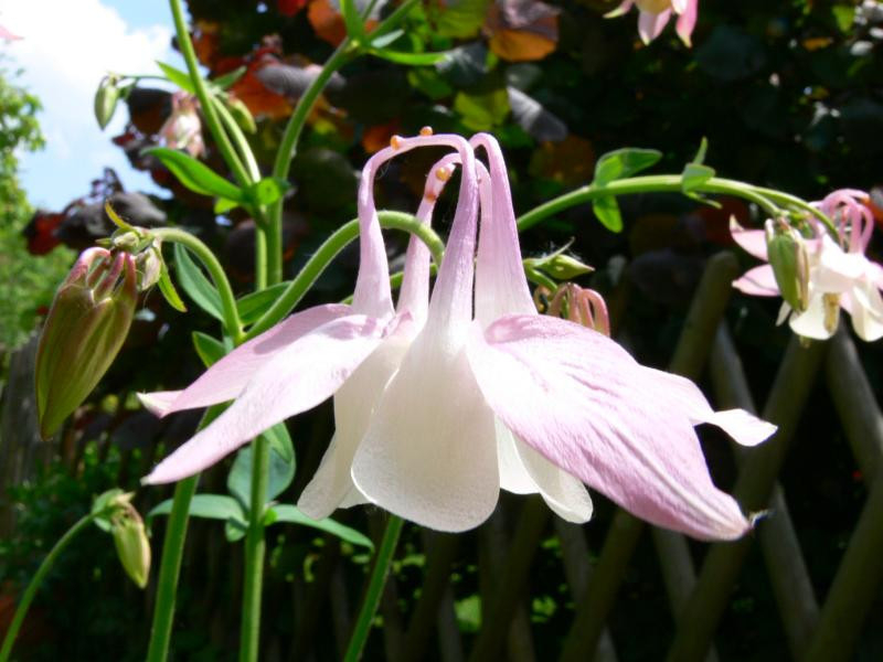 A haranglábak különleges szépségű virágában az öt mézfejtő hosszú sarkantyúvá nyúlik, köztük az öt sziromlevél, és mindegyik egyformán színes. A növény a sarkantyúk végébe rejti a nektárt, és ezt a rovar csak úgy tudja megszerezni, hogy mélyen belebújik érte a virágkehelybe, így közben nagy biztonsággal elvégzi a megporzást is. Alkonyatkor, amint a lemenő nap fényében áttetszővé válnak a virágok, jól megfigyelhető, ahogy szinte teljesen eltűnik a pontosan rá méretezett üregben a rovar, és a szívókája éppen eléri a jutalomcseppeket.