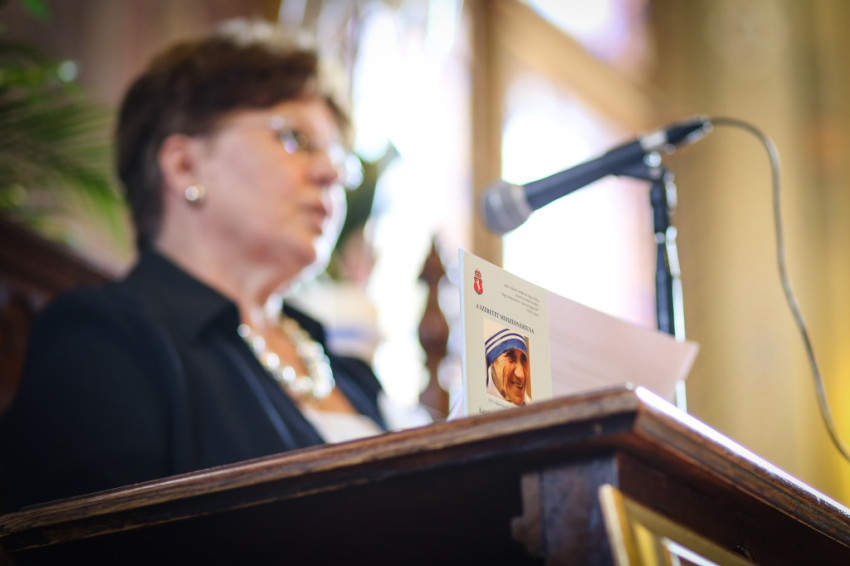 Wittner Mária volt országgyűlési képviselő Teréz anya és a jézusi szeretet címmel világunk ellentmondásaira hívta fel a figyelmet. Rámutatott: államfők, akik kitüntették Teréz anyát, felelősek sok-sok rombolásért. Majd Teréz anyát idézve mutatott rá, mit jelent a jézusi szeretet útján járni: a csend gyümölcse az ima, az ima gyümölcse a hit, a hit gyümölcse a szeretet, a szeretet gyümölcse a szolgálat, a szolgálat gyümölcse a béke.