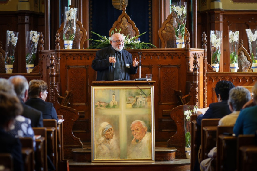 Thorday Attila, az újszegedi Árpád-házi Szent Erzsébet-templom és a Kalkuttai Szent Teréz anya-templom plébánosa Teréz anya prófétai egyénisége című előadása fogalomtisztázással kezdődött: bibliai értelemben próféta az, aki valaki nevében, képviseletében szól, az igaz próféta pedig az, aki Isten szándékát jól megértette, és hitelesen, bátran továbbadja azt.
