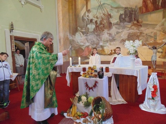 Az oltár elé helyezett termények közé olyan gyümölcs is került, mely korábban nem termett a faluban: bibliai kertet telepítettek, s ekkor gránátalmafát is ültettek a vámoscsaládi templom kertjében – s lám a fa tavasszal gyönyörű virágokat, majd termést is hozott. A templomfelújítás miatt át kellett ültetni a fát, de a gránátalmák beértek, és így októberre az oltár elé, a bibliai növények közé kerülhettek.