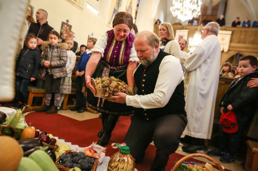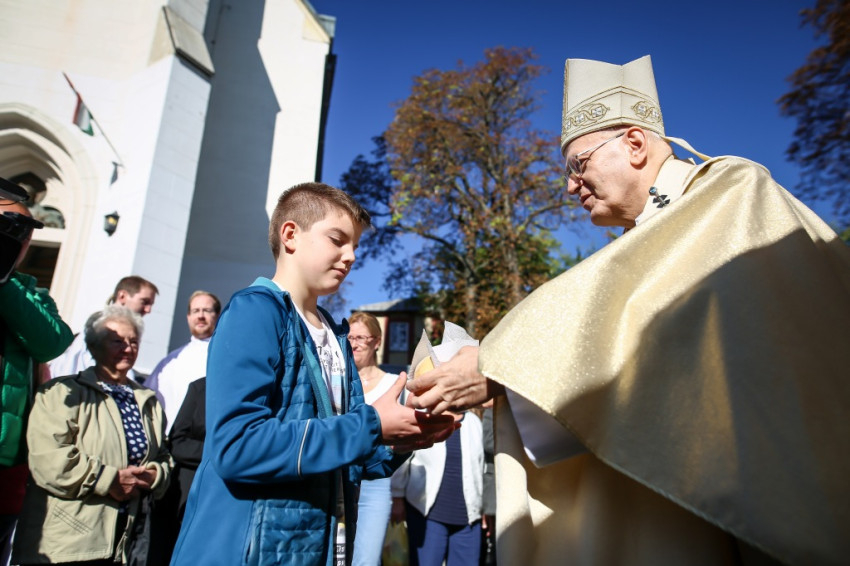 A szentmisét követően a bíboros a templom előtti téren megáldotta a terményeket.