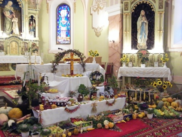 Kreatív és ügyesen összeállított terményes asztalok díszítették a bazitai és a kertvárosi templomot október első vasárnapján Zalaegerszegen. A hívek nagy lelkesedéssel készítettek el a föld terméséből jelképes felajánlási asztalt, amelyet helybéli kiskertekből, földekről szüreteltek le a termelők.
