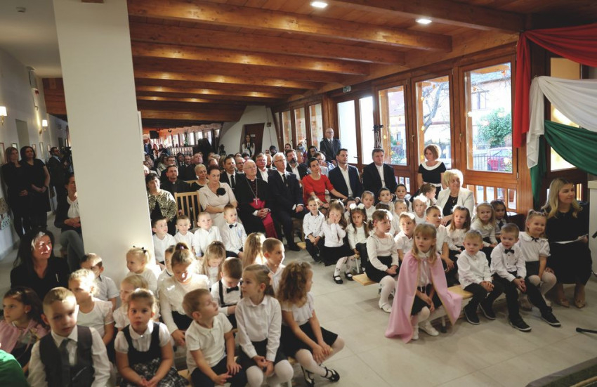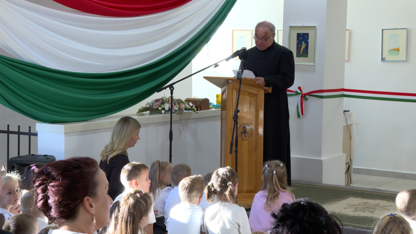 Szarvas Péter plébános az eseményen úgy fogalmazott, az egykori plébániaépületből kialakított óvodában szeptember óta jelen van a vidámság, a gyermekek mosolya, s ez a tisztaszívűség az, amiről Jézus is beszélt, mondván: „ilyeneké a mennyek országa”. Háláját fejezte ki, hogy nehézségek árán is, de elkészült a beruházás, melynél a korábbi plébániaépületet gondolta tovább a tervező, Csehák Fanni.