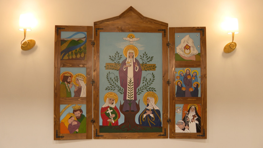 Az ünnepségen leleplezték a közösségi térben elhelyezett szárnyasoltárt, mely Szent Kinga életének és legendájának fontos eseményeit tárja elénk.