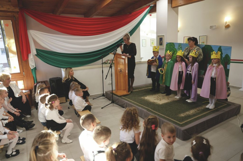 Az óvodások IV. Béla király lánya, Szent Kinga életét, legendáját bemutató kis előadással, énekes, játékos műsorral kedveskedtek a vendégeknek.