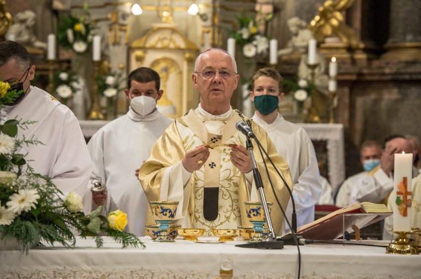 A szertartás végén Balog Gyula plébános köszönetet mondott a főpásztornak a szentmiséért, és köszöntötte őt abból az alkalomból, hogy 14 évvel ezelőtt éppen ezen a napon iktatták be.